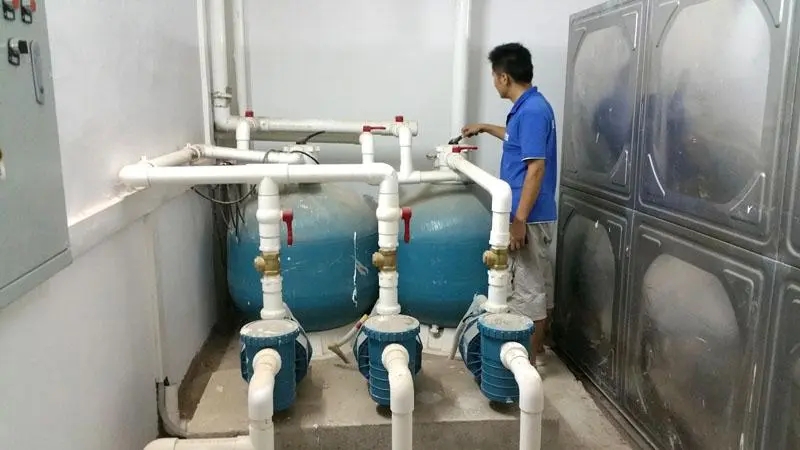 泳池水循環(huán)凈化系統(tǒng)的原理是通過將游泳池水流經(jīng)過濾器、加熱器、消毒劑、除藻劑和吸附劑等材料,對水質(zhì)進(jìn)行過濾、加熱、消毒、除藻和吸附過程,以達(dá)到清潔水質(zhì)的目的。